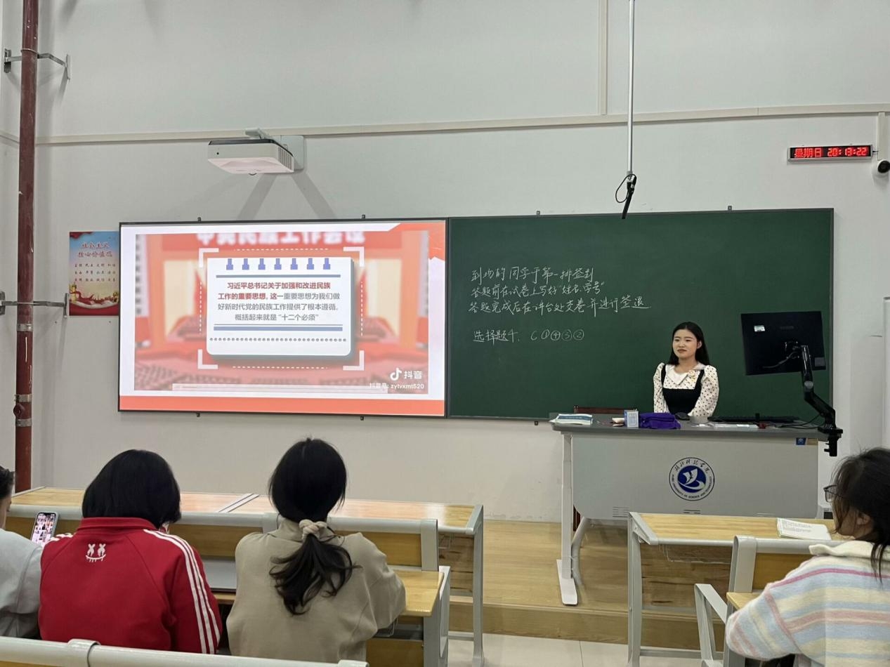 在宣讲活动的精彩高潮时段,陈好、黄瑶、赵露等学生党员紧密结合自身的学习体会与感悟,对习近平总书记关于加强和改进民族工作的深刻见解进行了深度挖掘与细致剖析。他们着重强调,中华民族共同体意识不仅是维系国家稳固统一不可动摇的坚固基石,还是促进民族团结、凝聚人心不可或缺的核心纽带,更是激发全民族昂扬向上精神风貌的强大灵魂力量。