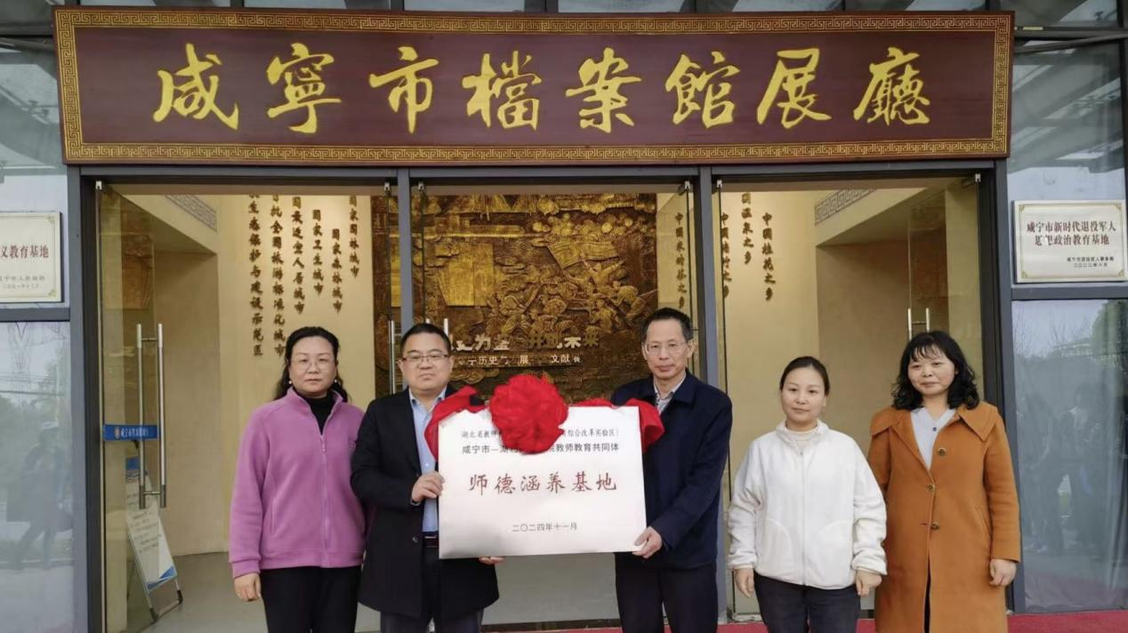 同日,咸宁市-best365网页版教师教育共同体“师德涵养基地”挂牌仪式举行,咸宁市档案馆副馆长方力、三级调研员钱立新、best365网页版,best365网页版党委书记袁尚会、党委副书记孙萍等出席仪式。