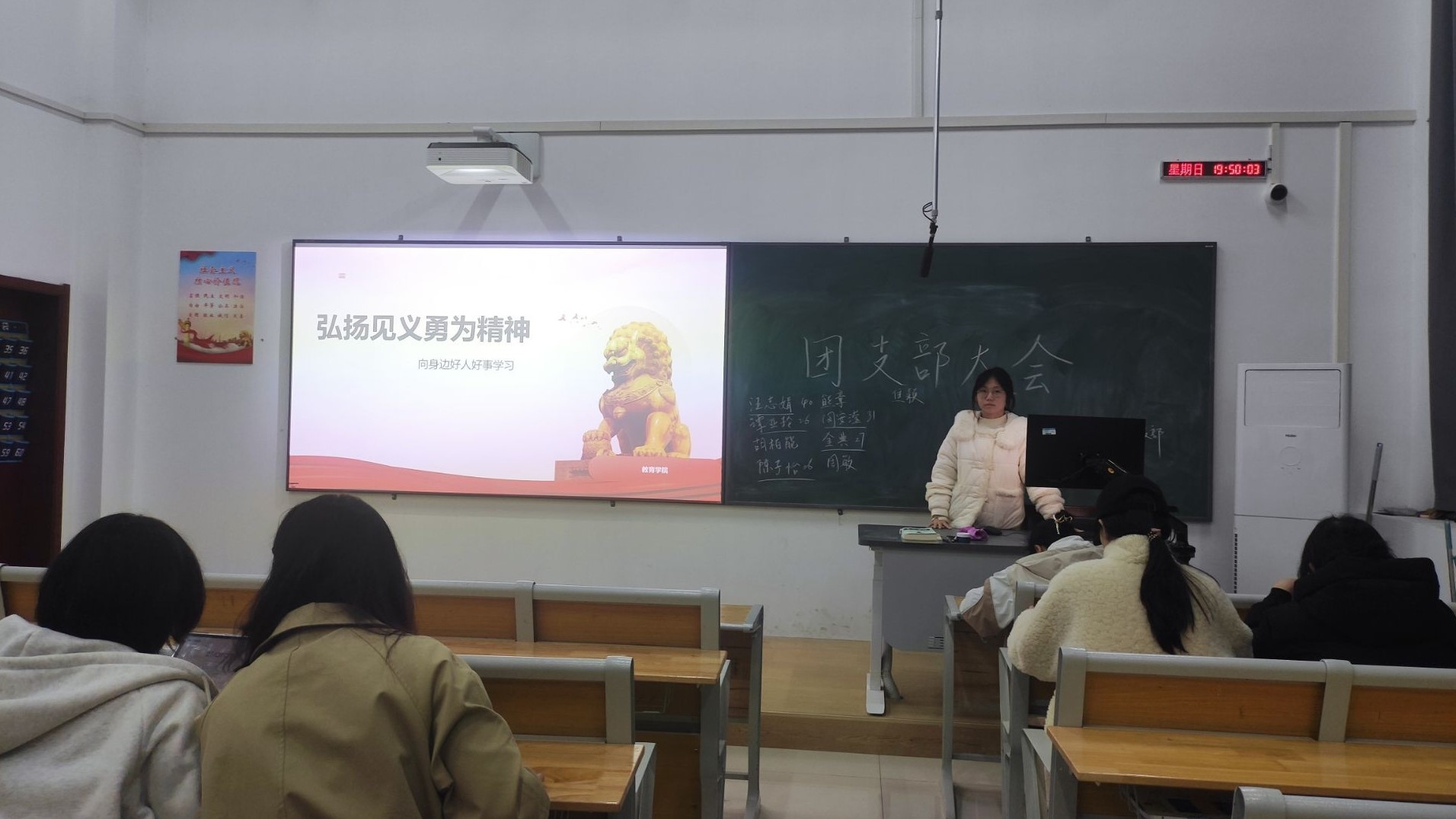 本次周日主题班会通过案例学习、心得分享等环节使教院学子深入探讨了见义勇为的时代内涵与行动智慧,凝聚了“勇为善为、正义同行”的共识,既激发了同学们的社会责任感,也强化了安全意识和法治观念,为培育新时代见义勇为好青年奠定了思想基础。