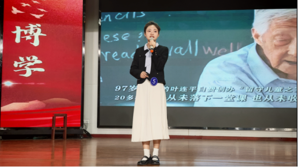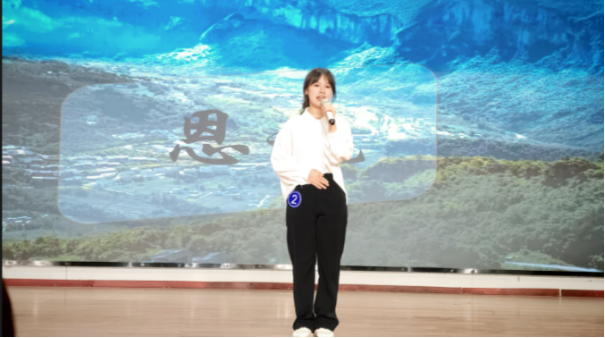 图为张佳灵同学演讲《筑梦乡土,育心未来》