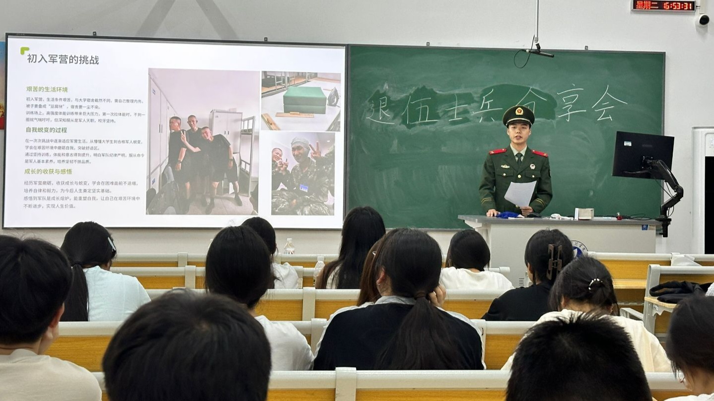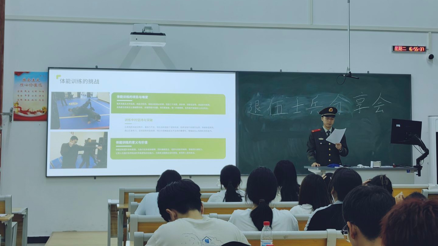 袁培硕同学的分享,让同学们感受到军旅生涯的价值。这场沉浸式分享会,既彰显退役大学生“退伍不褪色”的品格,更搭建起军地人才共育的桥梁。也为校园注入青春正能量,激励更多学子勇担使命,为社会贡献力量。