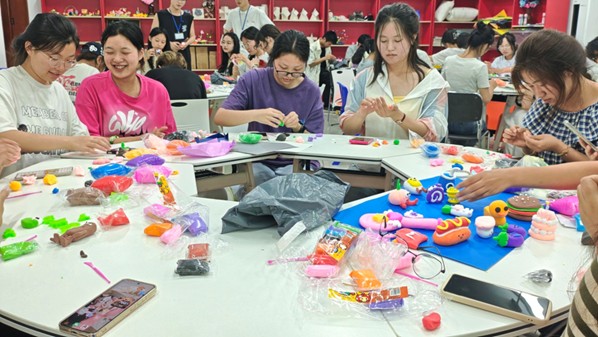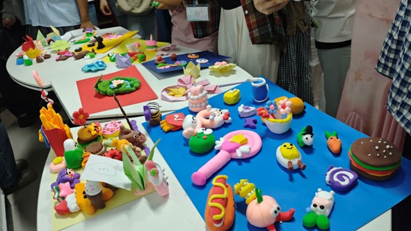 创作结束后,各小组代表依次登台展示成果。形态各异的黏土萌物、精巧别致的折纸造型,不仅彰显出同学们的奇思妙想,更流露出压力释放后的轻松愉悦。活动尾声,参与者将作品或带回珍藏,或陈列于展示区,供师生共同欣赏,让这份艺术创作的温暖与感动持续传递。