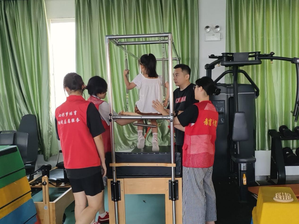 活动伊始,“梦之翼”团队便全身心投入到七彩梦康复中心的各个场景之中。志愿者们深知特殊儿童的个体差异,秉持“每个孩子都需要个性化方案”的原则,在协助记录儿童肢体协调训练过程时,格外细致用心,不放过任何点滴进步。从最初面对孩子时稍显青涩的紧张无措,到后来配合得愈发熟练,志愿者们切实体会到“耐心与专业同等重要”的深刻内涵。
