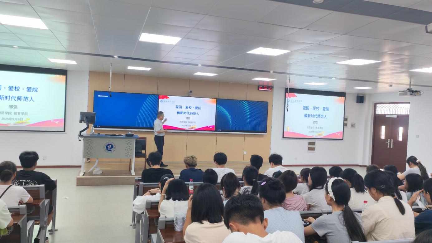 2025年9月7日,best365网页版,best365网页版2025级新生齐聚教三502教室,迎来了一场别开生面的入学教育讲座。best365网页版、师范学院院长邹强以“爱国爱校爱院,争做新时代师范人”为主题,为新生们呈现了一堂精彩纷呈的大学第一课。