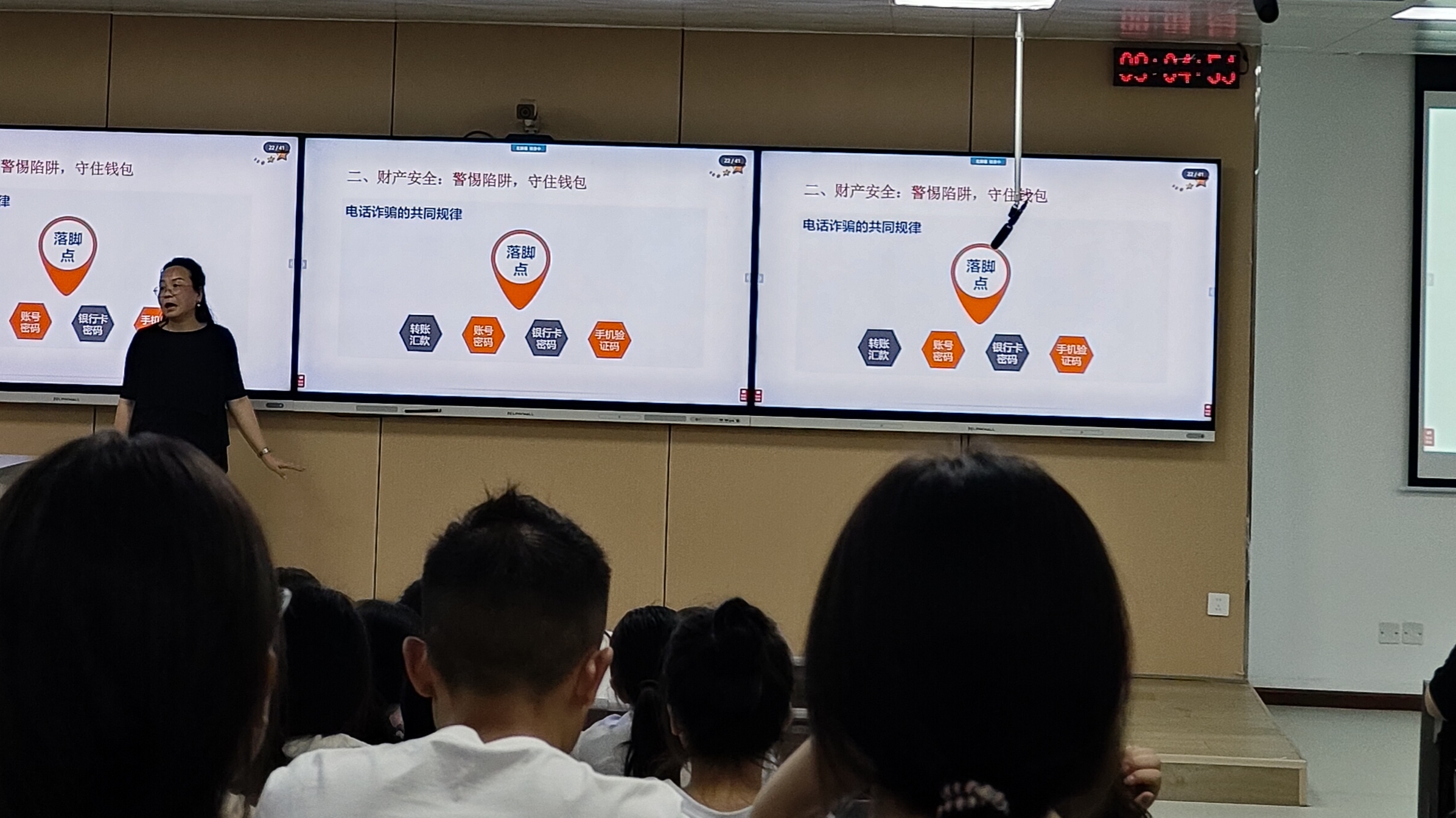 随着话题深入,孙老师将焦点转向财产安全问题,尤其针对当前高发的诈骗现象。她不仅总结了“不轻信、不透露、不转账”的实用原则,还结合“冒充身份”“校园贷”等典型骗局案例,叮嘱同学们理性消费、提高警惕,避免落入网络陷阱。 心理健康同样不容忽视。孙老师建议同学们学会通过运动、音乐和倾诉等方式释放情绪,积极利用学校心理咨询资源,同时也要主动关心身边同学,共建温暖美好校园。