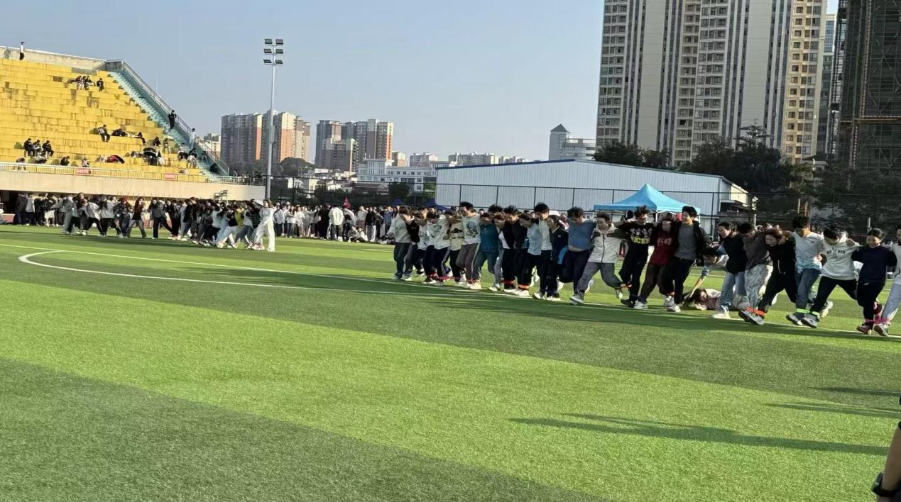 趣味项目同样亮点满满:集体跳绳赛场,队员们默契配合,跳绳在空中划出流畅的弧线;“多人绑腿跑”项目里,参赛队伍喊着整齐的口号稳步前进,摔倒了便迅速站起,彼此的搀扶与欢笑,让赛场充满了团结的温度。