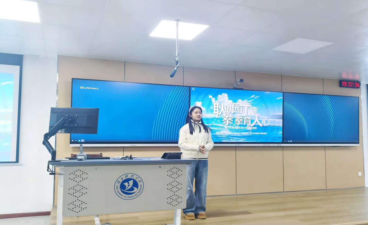 图为24级学前教育余婧玮学姐开展用电安全讲话
