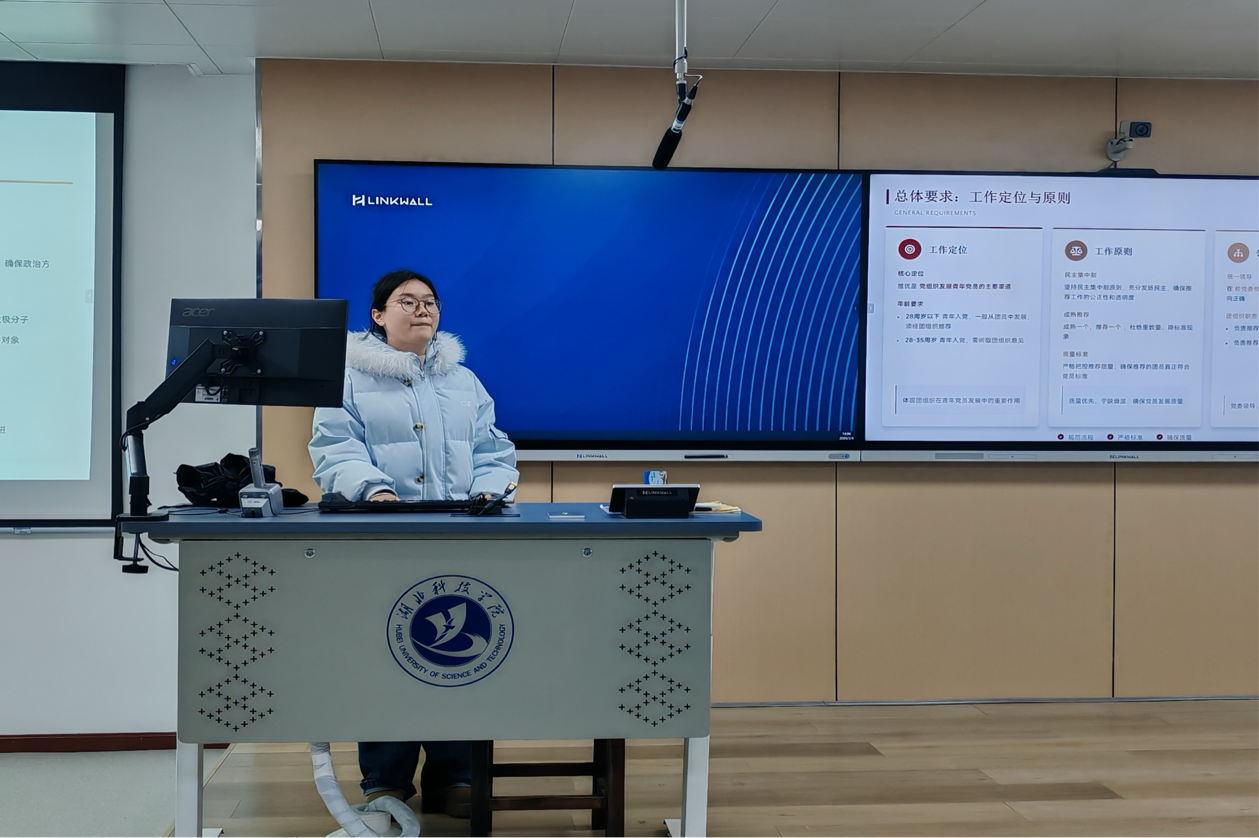 在24级班会中,教育学类一班高子怡同学围绕入党推优与入党申请流程进行系统讲解,明确推优标准、材料要求与时间节点,引导广大学生坚定理想信念,端正入党动机,以优良的学业表现和积极的服务行动向党组织靠拢。