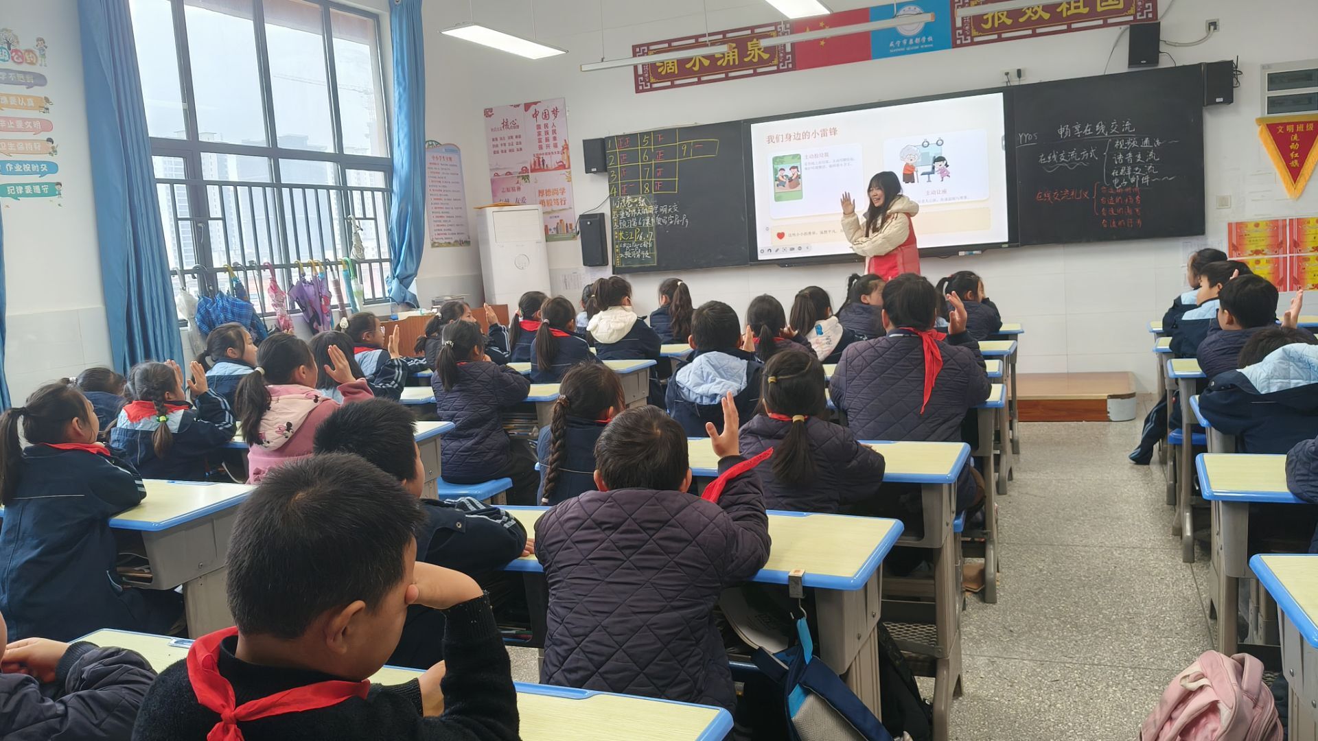 活动最后,各小组同步向所在教室学生发出倡议,号召大家以雷锋为榜样,在校园中做到尊敬师长、团结同学、勤学善思、爱护公物;在家庭里践行孝敬父母、勤俭节约、主动担当的优良品德;在社会中恪守文明准则、爱护公共环境、主动帮扶他人,将雷锋精神内化于心、外化于行,从身边小事做起,争做新时代雷锋精神的传承者与践行者。