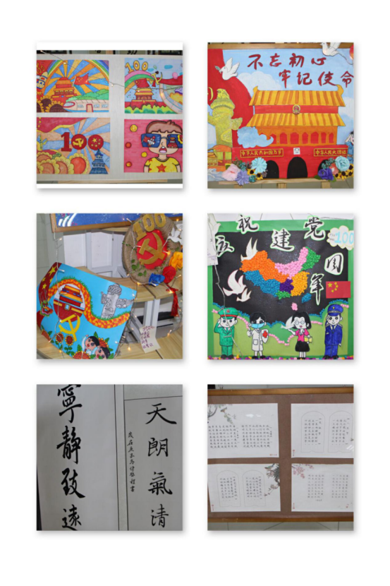 学术报告厅外,学生“三字两画(话)”和手工作品展示,吸引了众多师生驻足欣赏,围绕建党100周年主题设计的手工作品、书法作品、反映伟大抗疫精神的绘画作品,把学生的师范技能展示与“迎百年华诞”结合起来,使得本次展演更具意义。