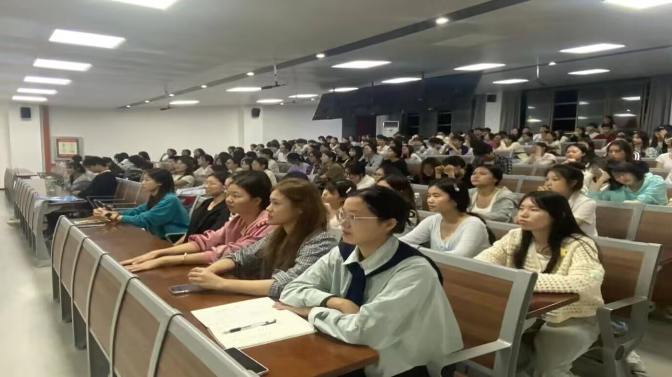 图为同学们认真倾听班会内容