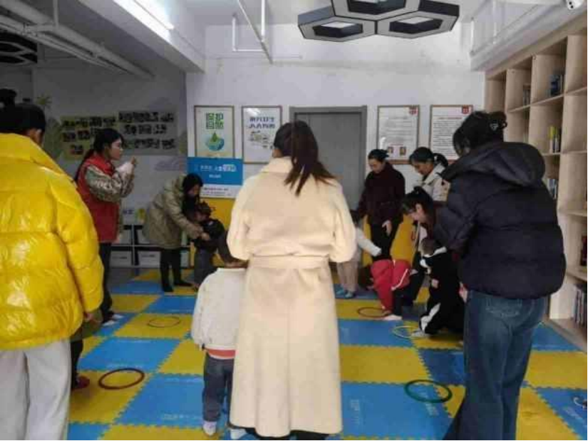 在核心游戏环节,《动物来了》体育游戏与《小动物有大本领》亲子互动游戏轮番上演。志愿者播放对应音乐,带领家长和孩子围成圆圈,跟着歌词指令做出摆手、跑步等模仿动物的动作,孩子们在欢快的游戏中辨别不同动物的特征,逻辑思维与反应能力得到有效锻炼,现场欢笑声、欢呼声此起彼伏,亲子互动氛围十分热烈。