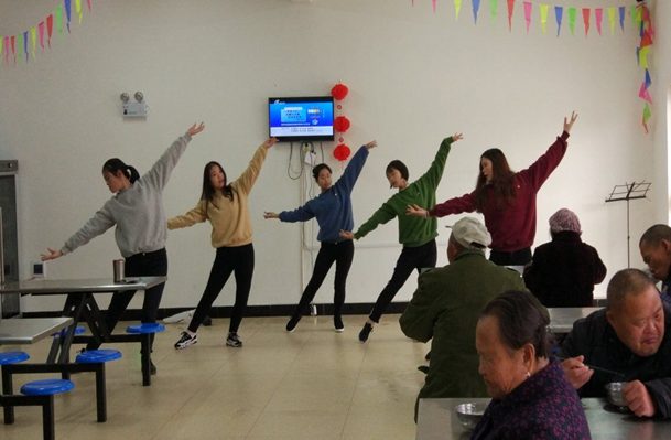 图为 best365网页版志愿者们为福利院老人表演节目