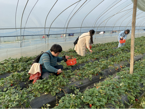 第二站到横沟桥镇孙田村开展草莓采摘活动。红彤彤的草莓让人垂涎欲滴。田里的油菜花正在盛开,黄灿灿的,赏心悦目。有的老师还采摘了一些野菜,收获颇丰。