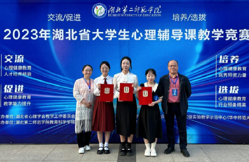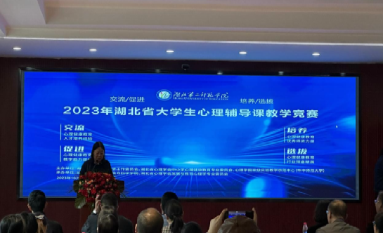 (通讯员:孔祥娜,张碧云,审稿:俞佳君)10月22日,湖北省大学生心理辅导课教学竞赛在湖北第二师范学院隆重举行,来自省内14所设有心理学专业的高校48位选手同台竞技,进行了专业教学展示。我校应用心理学专业张碧云、卢会醒两位老师带领王逸梅、刘欣怡、何叶等三位同学参赛。经过激烈的角逐,三位同学分获二等奖、三等奖和优秀奖。三位同学的选题契合中小学生的心理健康需求,课件制作美观大方,教学设计环环相扣,得到了评委教师的肯定。