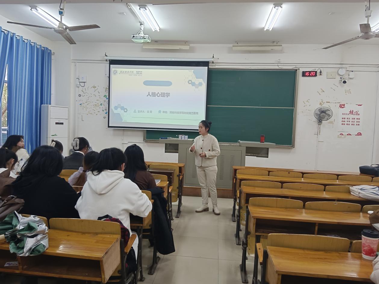 (通讯员 洪艳萍)2023年12月8日下午,我院优秀校友、应用心理学专业兼职教师、湖北科技学院附属第二医院心理医生吴芳老师为2022级应用心理学专业学生分享了人格心理学相关理论在医院临床上的应用,《人格心理学》主讲教师洪艳萍主持分享课,应用心理学教研室张碧云主任参与了分享会。