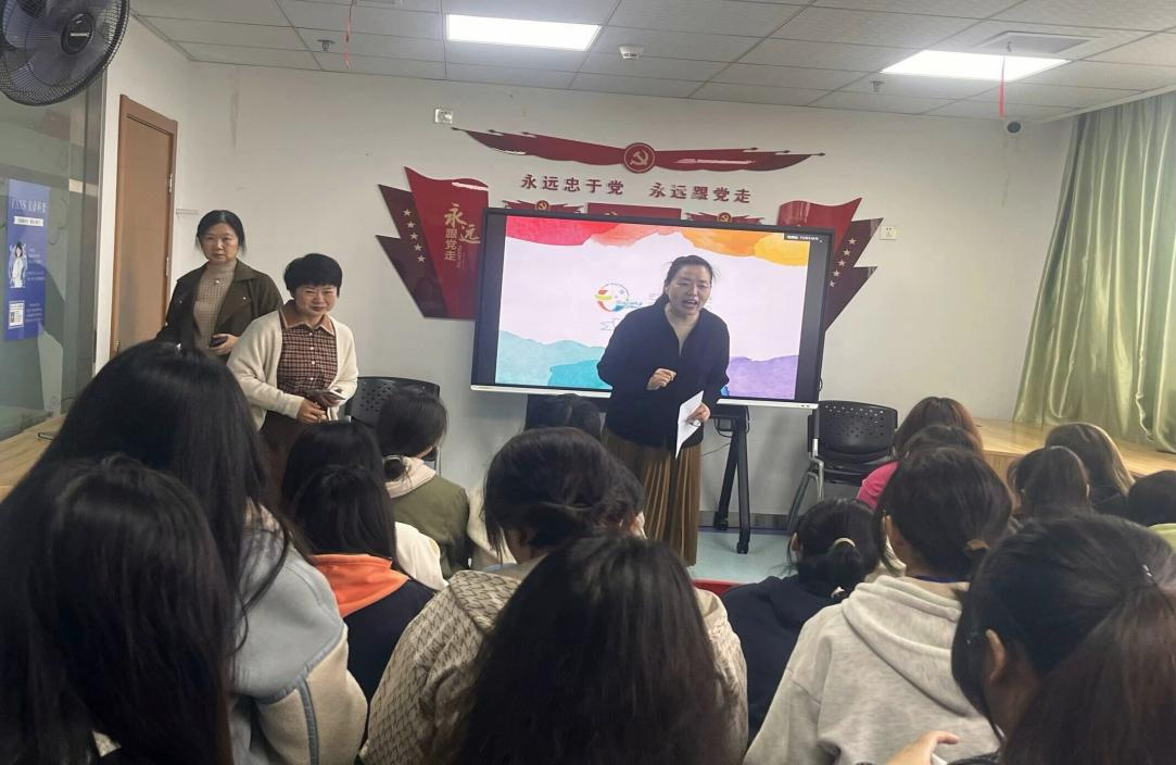 图1:咸宁市七彩梦康复医院创始人吕秀平为同学们做培训