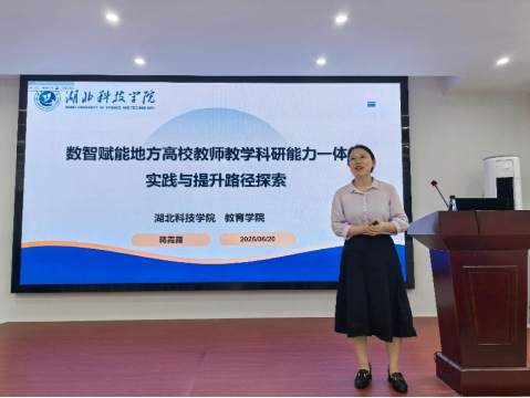 best365网页版蒋霞霞副教授聚焦“数智赋能地方高校教师教学科研能力一体化实践与提升路径探索”的专题,结合国家教学改革需求,提出“教学-科研-社会服务”三位一体的数智化实践框架。她以自身开发的智慧课堂案例库为例,展示了如何通过数据驱动优化师范生培养流程。