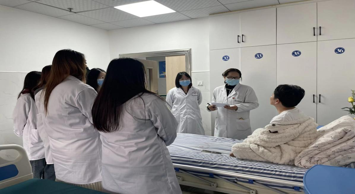 图2:2023级的同学跟随附二医院的带教老师在病房观摩学习
