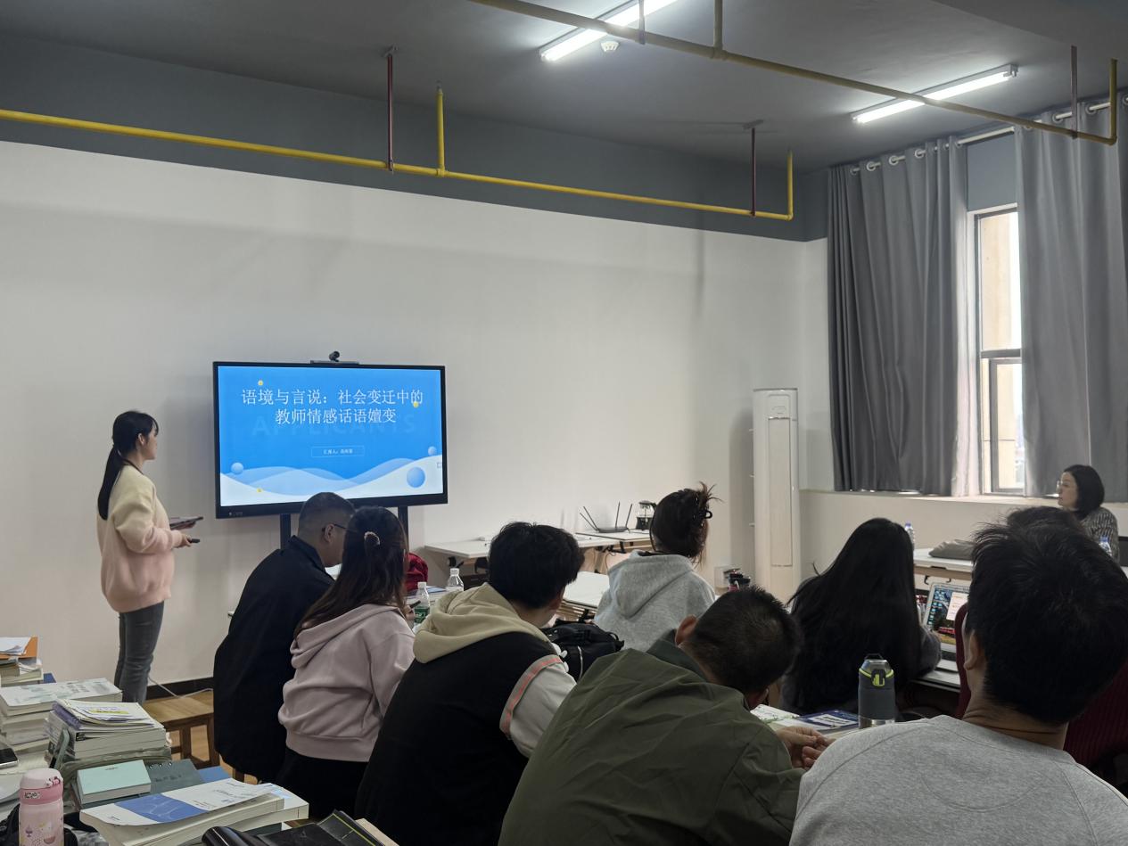 “今天我们面临的‘标准化教学’‘情感劳动忽视’等困境,其实在汉代、宋明乃至西方的教育思想发展中早有回响。”该同学在分享中感慨道。她表示,历史经验告诉我们,教师的情感表达始终被特定时代的语境所塑造,但教师群体也从未停止过寻找情感表达与突围的可能。此次分享不仅让她自身对教育情感的哲学根基有了更系统的理解,更激励她在未来的教育实践中,既要尊重传统教育智慧,也要勇于突破,努力成为有温度、有创意的“情感共建者”。