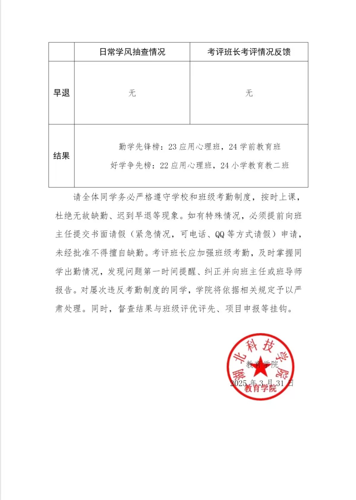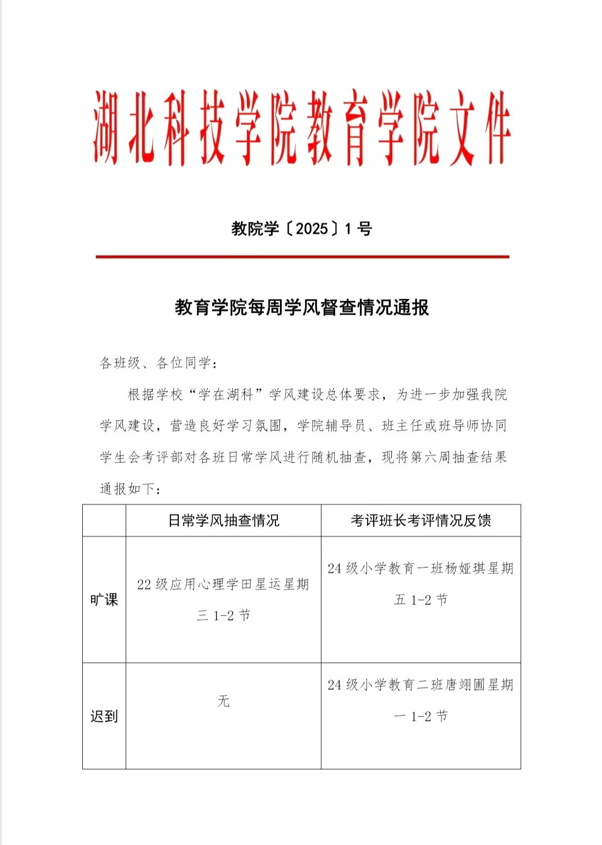 best365网页版每周学风督查情况通报-第六周
